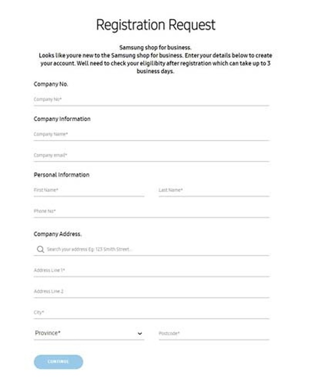 Email a copy of your company’s business registration to our SMB contact at: smb.contact@samsung.com. This will be needed for your SMB account approval.
