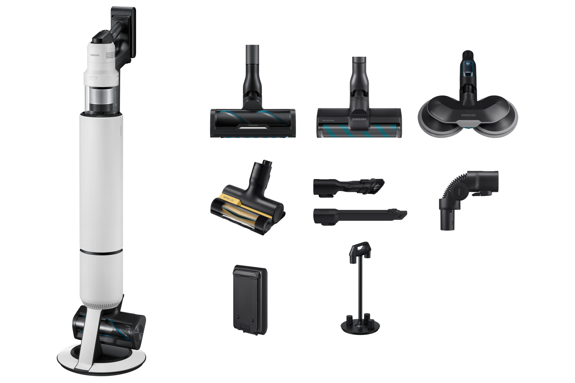 - 1. * Based on testing by SLG Prüf- und Zertifizierungs GmbH, in accordance with the IEC 62885-4 Cl.5.8 standard, using a handheld type vacuum cleaner (with no brush) in Jet mode. The results were compared to cordless stick vacuum models available on the market with a stated suction power within 15% of the actual suction power of the Samsung model tested by SLG. Based on sales data between January 2024 and December 2024 as compiled by an independent market research institute.** Based on testing by SLG Prüf- und Zertifizierungs GmbH, in accordance with the IEC 62885-4 Cl.5.8 standard. Measured at the inlet of the non-motorized tool when the dustbin is empty, using Jet Mode and a large capacity battery that is fully charged. Lasts up to 1 min. *** The ability to identify different cleaning environments and the time it takes to change the settings can be affected by environmental conditions. The operation of AI Cleaning mode 2.0 may be limited in certain environments, such as when the All-in-one Clean Station is unplugged or WiFi is unstable or the Bluetooth connection status between the stick vacuum cleaner and the All-in-one Clean Station is unstable.)**** Refers to dust particles with the size of 0.3µm or above. ***** The stated run time applies when using a large capacity battery (3970mAh) and the minimum power level with a non-motorized tool attached. Results may vary depending on actual usage. Go to feature