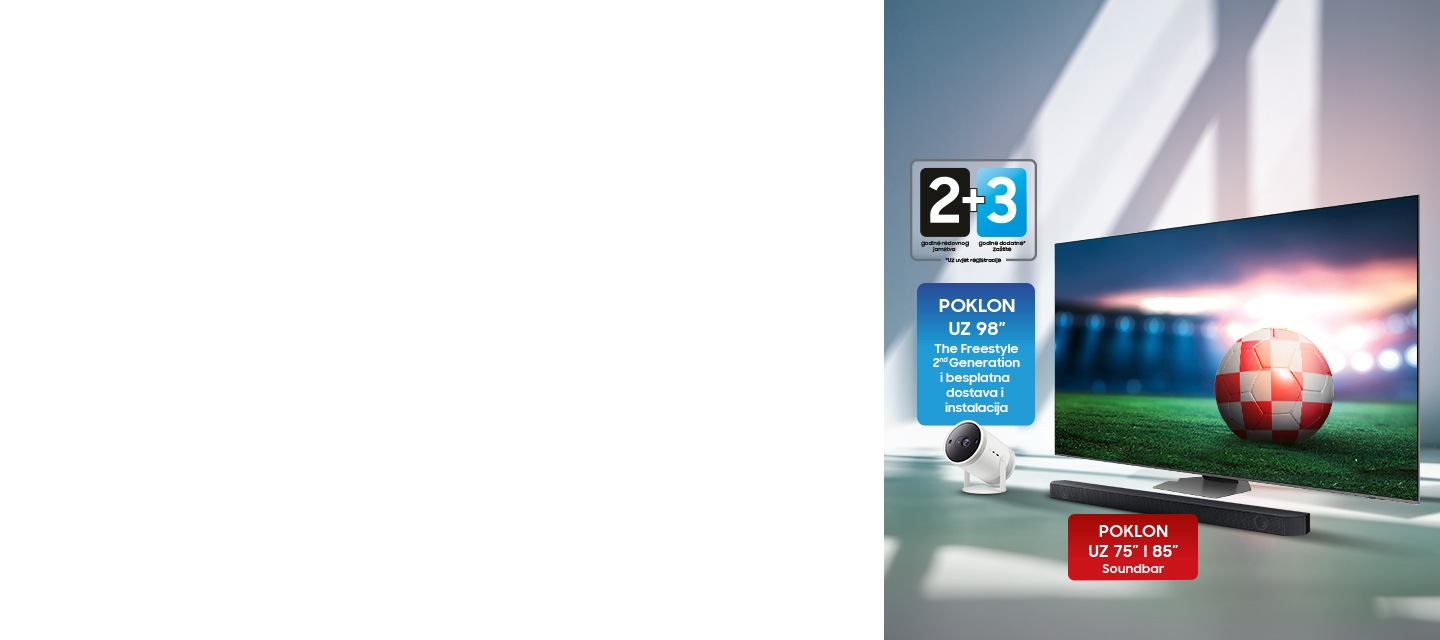 Ako odaberete Neo QLED 8K, Neo QLED, OLED i QLED 75” ili 85"" poklanjamo Soundbar, dok vas uz UHD 98” čeka poklon The Freestyle 2nd Generation projektor i besplatna dostava i instalacija.