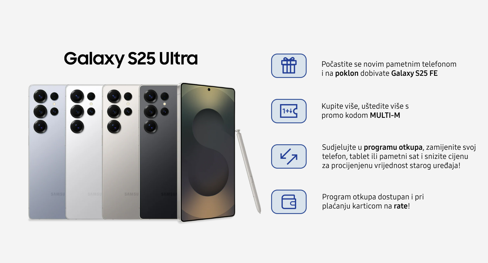 Galaxy S25 Ultra je za sve kojima je svaka fotografija nova priča, Galaxy S25 Edge je za sve koji traže elegantnu ravnotežu između performansi i dizajna, a uz njih dobivate S25 FE na poklon, jer najbolji pokloni su oni koje ne planiramo.