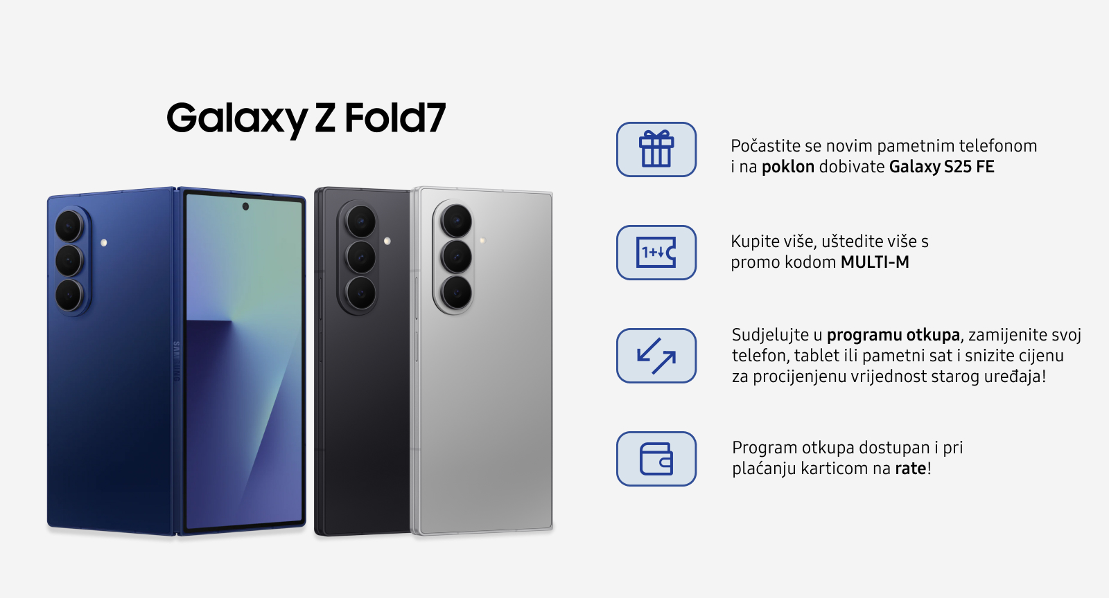 Galaxy Z Fold7 je za one koji traže više prostora za izražavanje svojih ideja, a uz njega dobivate S25 FE na poklon, jer najbolji pokloni su oni koje ne planiramo.