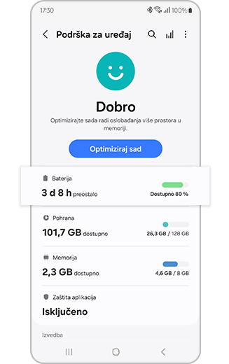 ※ Savjeti za produljenje trajanja baterije odnose se na operacijski sustav Android T (verzija 13). Izgled i naslov određenih izbornika postavki mogu se razlikovati ovisno o dostupnoj verziji sustava Android.