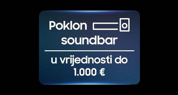 Promocija koja se odnosi na poklon i popust traje od 7.5. do 25.5.2025. ili do isteka zaliha poklona i važeća je za QLED, OLED, Neo QLED i The Frame modele televizora iz 2025. godine od 48’’ i veće. Promocija je dostupna kod Samsung prodajnih partnera navedenih u pravilima promocije. Kupnjom u pretprodaji, ostvarujete pravo na poklon soundbar u vrijednosti do 1.000 €** te popust u iznosu do maksimalno 500 €***.