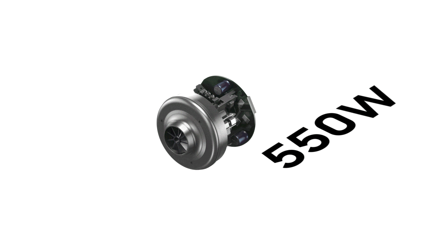 Usisavajte učinkovitije snagom usisa do 200 W*. Motor s tehnologijom digitalnog pretvarača optimizira protok zraka zavarenim ultrazvučnim lopaticama ventilatora. Na taj način motor s digitalnim pretvaračem stvara veliku ulaznu snagu do 550 W**, održava visoku razinu energetske učinkovitosti i generira usisnu snagu do 200 W*.2