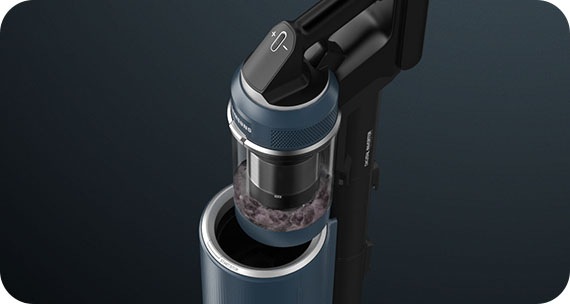 A Samsung Bespoke Jet™ használható egy Minden az egyben Tisztító állomással, amely hatékonyan⁵ üríti ki a porgyűjtő kamrában lévő koszt, és állatszőrt az "Air Pulse" technológia segítségével.