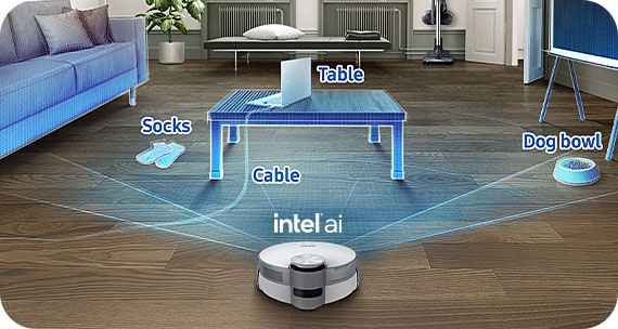 A Samsung Jet Bot™ Jet mesterséges intelligencia tárgyfelismerés technológiát használ, hogy azonosítsa és feltérképezze, mely tárgyakat kerülje el⁹ a takarítás során.