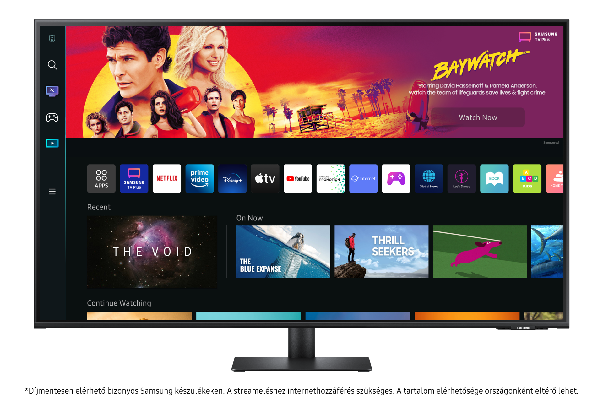 Könnyed szórakozás. Élvezd a Netflixet, a YouTube-ot és más streaming-szolgáltatásokat, elég csak a monitort WiFi-hez csatlakoztatnod. A Samsung TV Plus ingyenes élő és igény szerinti tartalmakat is kínál, letöltés vagy regisztráció nélkül, az Universal Guide pedig személyre szabott tartalomajánlásokat biztosít.
