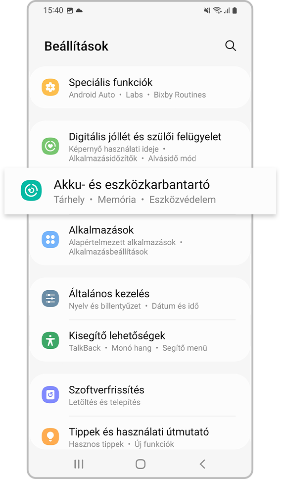 Megjegyzés: Az eszköz képernyőképei és menüi az eszköz modelljétől és szoftververziójától függően eltérhetnek.