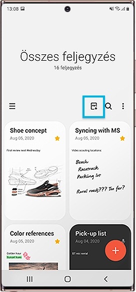 A program a Samsung Cloud szolgáltatáson keresztül a Galaxy Note20 és Note20 Ultra készülékek, táblagépek és számítógépek között automatikusan menti és szinkronizálja feljegyzéseidet. Az okostelefonok, táblagépek és számítógépek közötti automatikus szinkronizáláshoz nem kell a Mentés gombot nyomni. Feljegyzéseid automatikus szinkronizálásnak köszönhetően bármelyik eszközödön írhatod és szerkesztheted.