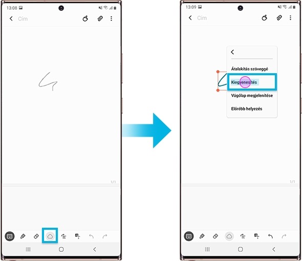 1. lépés Az eszköztáron érintsd meg a Kiegyenesítés elemet. A program automatikusan kiegyenesíti a kézírásod a képernyőn.