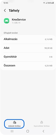 - Töröld a KmxService alkalmazás adatait az alábbi lépésekkel