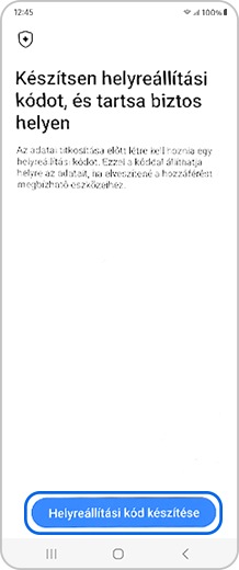 A készüléken lévő személyes információk vagy adatok biztonsági másolatának mentése a Samsung Cloudba, valamint helyreállítása a Samsung Cloudból helyreállítási kóddal végezhető el, amely a „Megerősített adatvédelem” funkció elindítása során csak egyszer jön létre.
