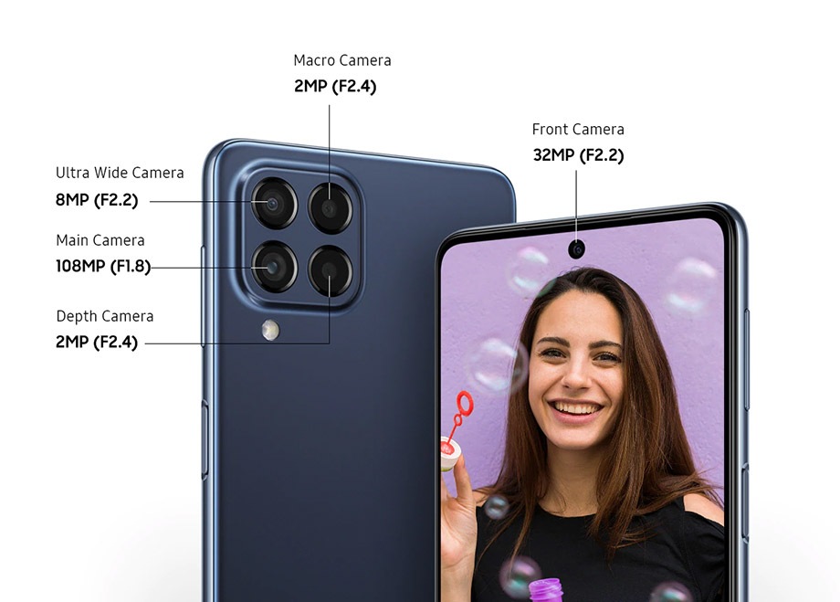Dengan desain elegan minimalis tanpa siku tajam serta desain frame kamera yang juga stylish, membuat Galaxy M53 5G cocok untuk menemani segala kegiatan produktif Anda.