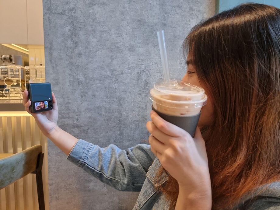 Baik itu untuk melakukan video call sambil makan dengan teman Anda atau melakukan live mukbang di Instagram, mode Flex* di Galaxy Z Flip3 siap membantu Anda.