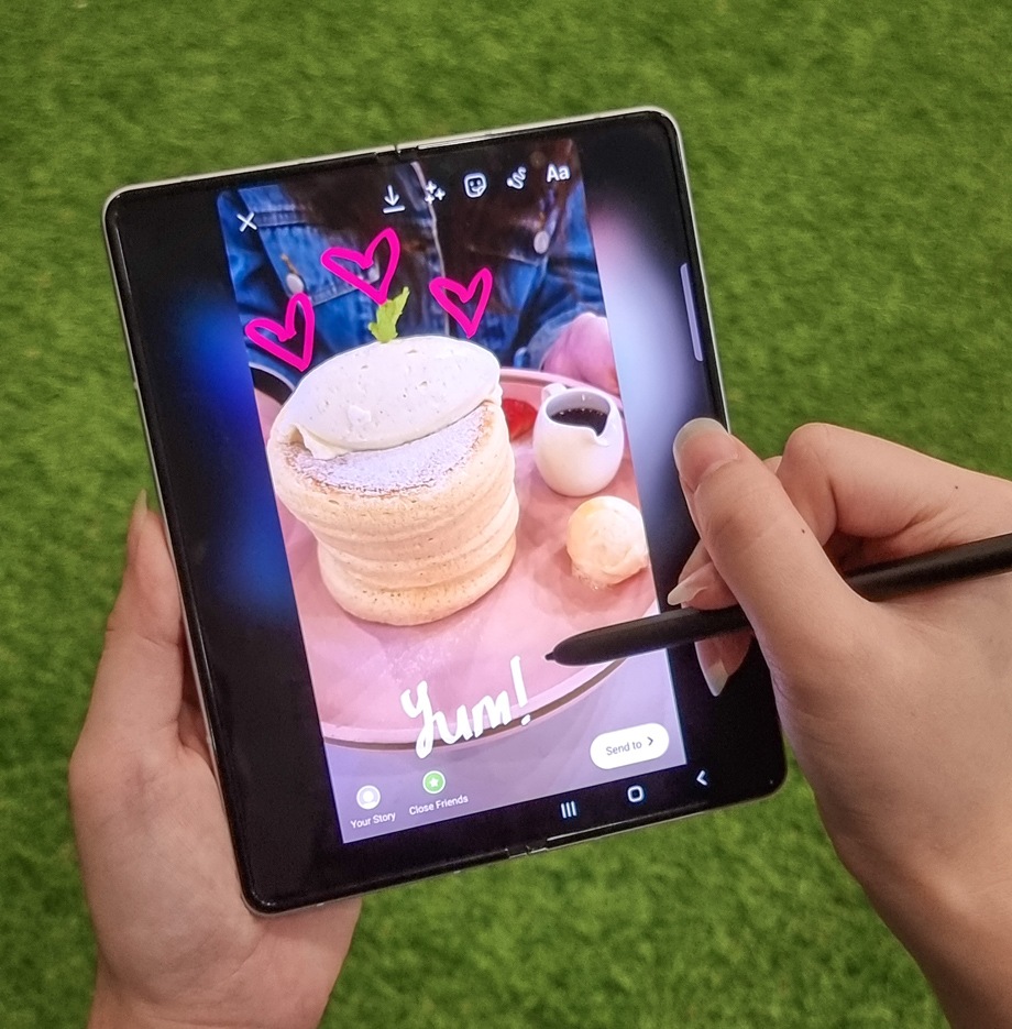 Kombinasi Layar Infinity Flex berukuran 7.6 inci dan speaker stereo suara kitar berteknologi Dolby Atmos ® akan memberikan pengalaman hiburan yang imersif, di mana pun dan kapan pun!