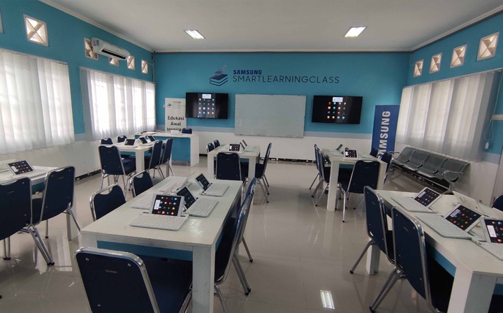 Samsung Smart Learning Class (SSLC) merupakan program pengenalan cara baru dalam proses belajar mengajar melalui pemanfaatkan teknologi dan gadget dengan cara yang interaktif dan menyenangkan dengan tujuan agar para siswa lebih bersemangat dalam menggapai cita-cita. Fasilitas yang diberikan kepada sekolah mitra adalah ruang kelas berbasis Teknologi Informasi dan Komunikasi (TIK), yang dilengkapi dengan Samsung Galaxy Tab A dengan S-pen, Smart TV 55”, AC 2PK dan koneksi internet, serta konten-konten digital e-learning yang dibutuhkan dan disesuaikan dengan kurikulum. Sebelum Program SSLC dimulai, pengenalan akan produk-produk Samsung dan pelatihan penggunaan teknologi, serta konten-konten digital e-learning, diberikan kepada para guru agar mereka dapat memaksimalkan fasilitas SSLC yang ada dengan lebih kreatif dan berinovasi, sehingga proses pembelajaran dapat dilakukan secara menyenangkan dan mudah dimengerti oleh para siswa. Untuk keterangan lebih lanjut mengenai SSLC, kunjungi: https://www.samsung.com/id/aboutsamsung/sustainability/corporate-citizenship/education/smart-school/