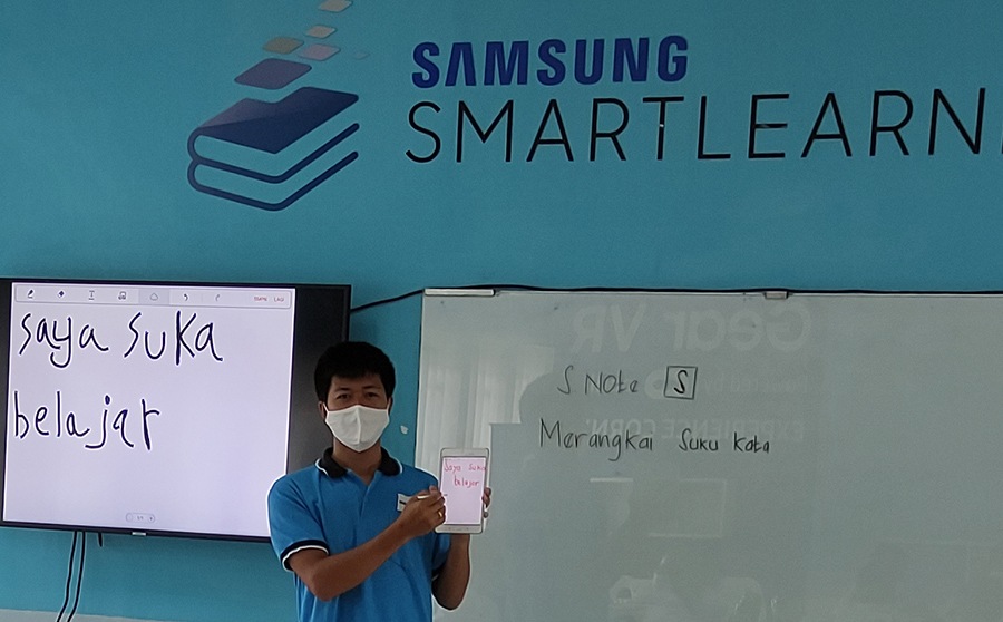 Sugih Bastian, AP Manager Wahana Visi Indonesia Biak, tengah menunjukkan cara penggunaan Samsung Galaxy A with S Pen. Selain menjadi salah satu sarana untuk PJJ, Samsung meyakini teknologi digital dapat semakin meningkatkan efektivitas kegiatan belajar mengajar di masa depan. Kapasitas tenaga pendidik dalam mengoperasikan perangkat komputer menjadi dasar dalam mengantarkan siswa meraih pendidikan yang lebih baik. Melalui kehadiran SSLC, Samsung mendobrak tantangan yang dihadapi tenaga pengajar di Biak, Papua. Didukung fasilitas yang memadai, inisiatif pelatihan pengenalan dan pemanfaatan teknologi berhasil dijalankan dengan merangkul 136 guru dari 66 sekolah pada tingkat SD hingga SMA untuk penerapan PJJ yang lebih optimal.
