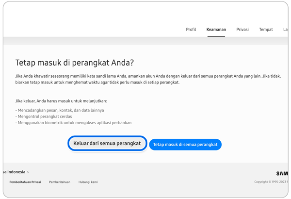 Catatan: Semua sesi login saat ini dan yang ada akan keluar saat Anda memilih Keluar dari semua perangkat.