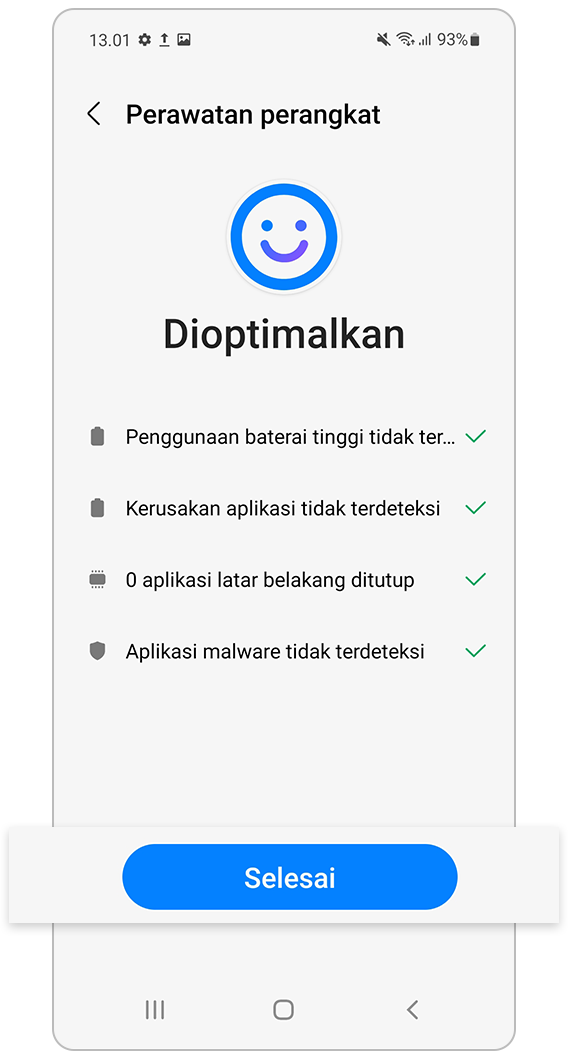 - Pastikan aplikasi perangkat terbaru dengan memeriksanya secara berkala.