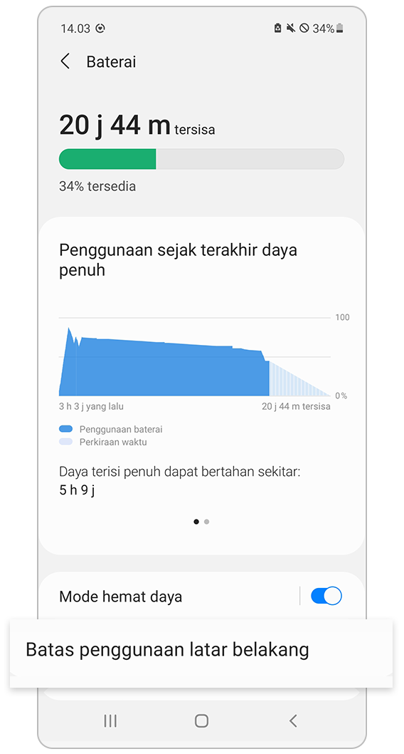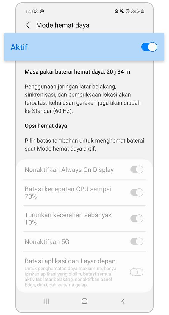 - 'Hemat daya’ membatasi penggunaan jaringan, sinkronisasi data, info lokasi di latar belakang.