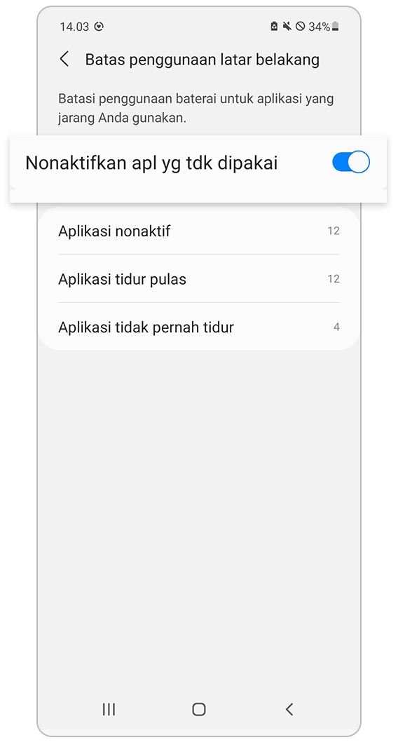 - Membatasi penggunaan aplikasi dan Layar depan