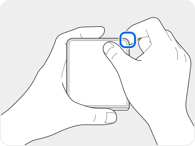 Lipat Galaxy Z Flip7 dan posisikan dengan kamera depan menghadap ke atas. Gunakan bagian datar jari untuk perlahan menarik bagian sudut kanan atas casing depan ke arah luar untuk mencopotnya.