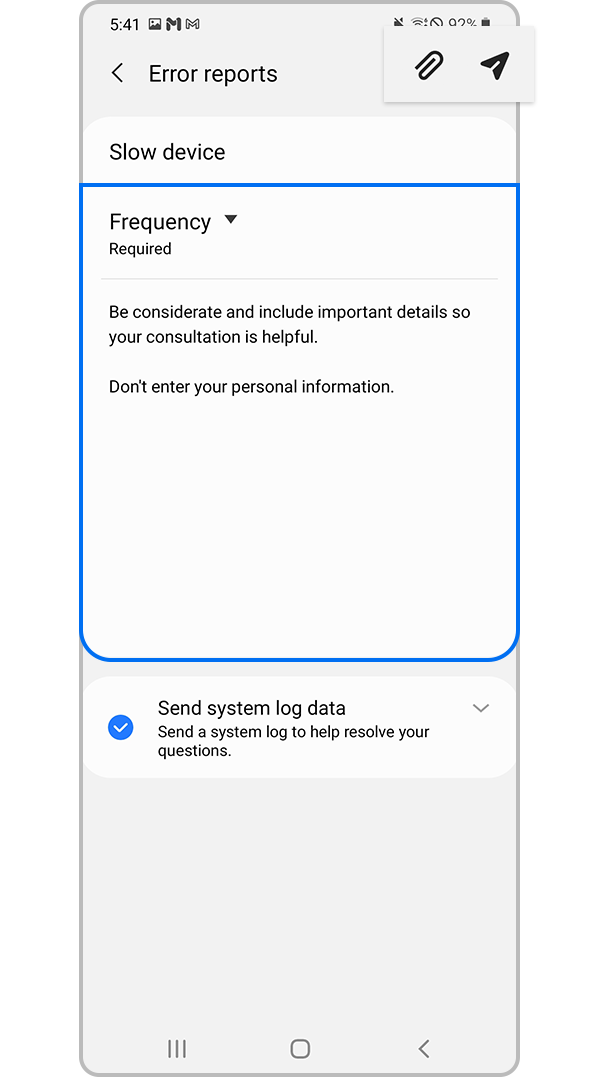Dengan aplikasi Samsung Members, Anda dapat mengirimkan laporan kesalahan untuk memecahkan masalah ponsel Anda. Anda dapat mengirimkan laporan mengenai masalah seperti perangkat lambat, panas berlebih, sistem/pengaturan, dan banyak lagi. Lihat langkah-langkah di bawah ini tentang cara mengirimkan laporan kesalahan.