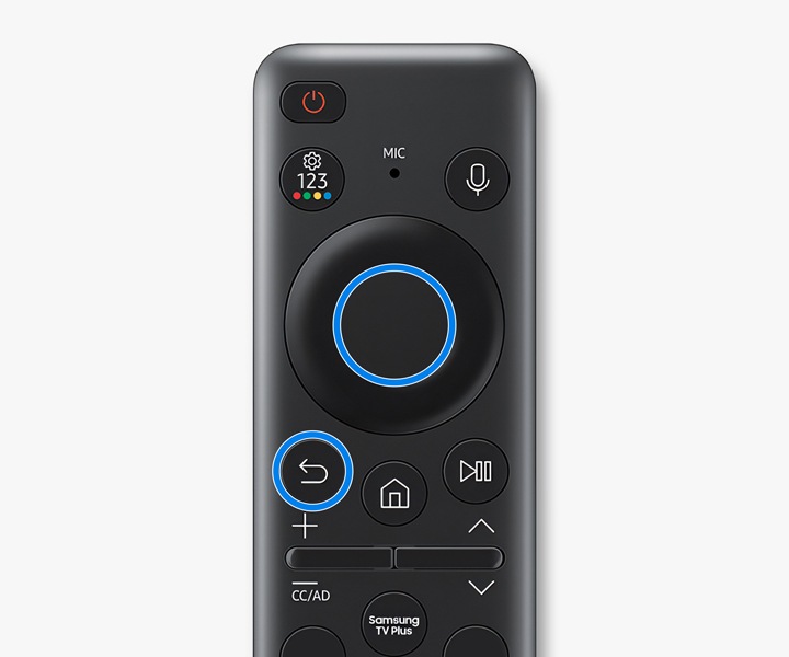 Catatan: Gambar, tombol, dan fungsi Samsung Smart Remote dapat bervariasi, tergantung pada model perangkat dan negara.