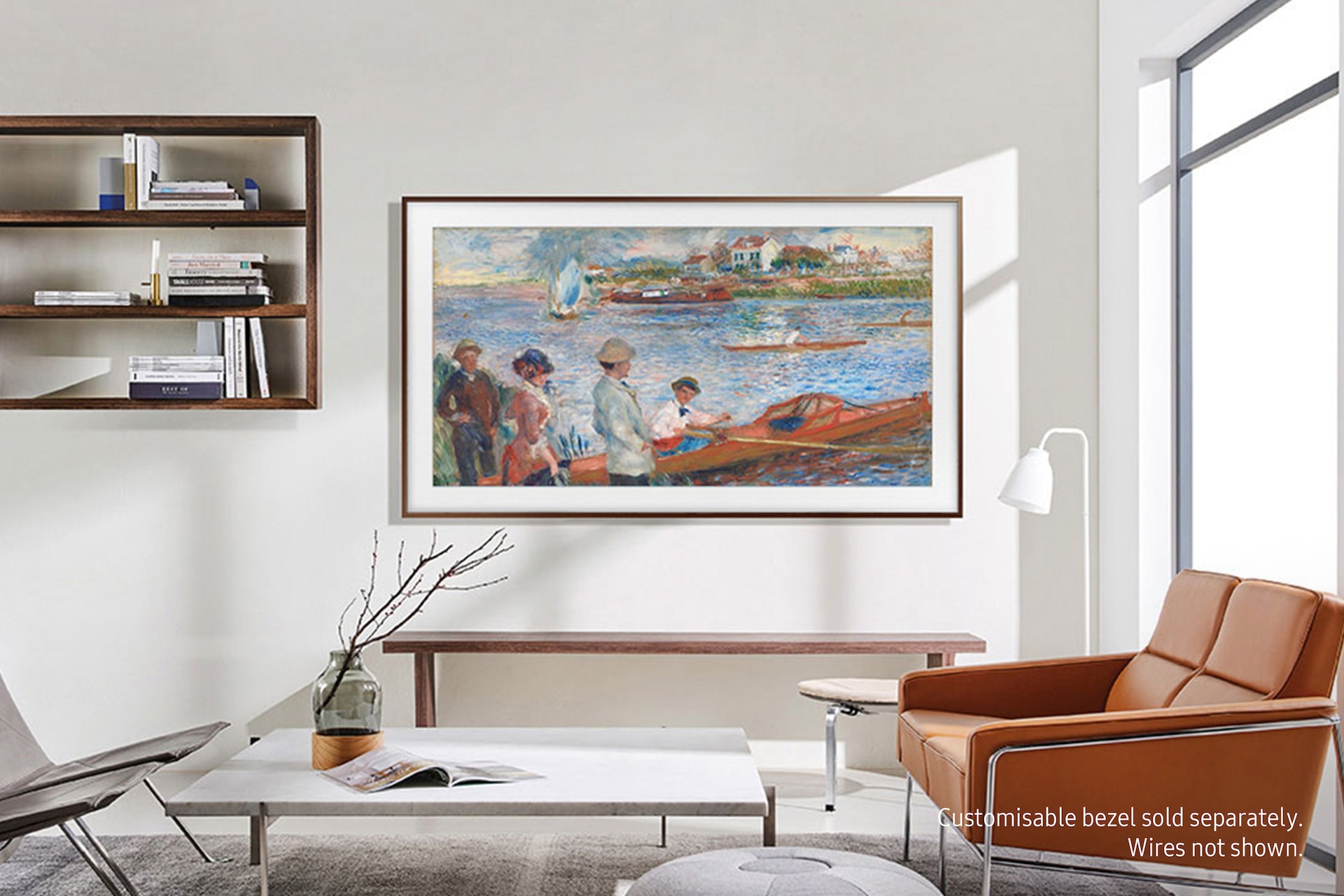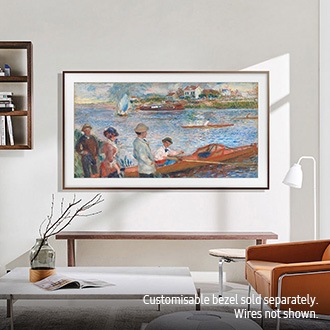 *Customisable bezels each sold separately. Available colours and designs may vary. For full availability, visit theframebezel.com.TV when it’s on, Art when it’s off.