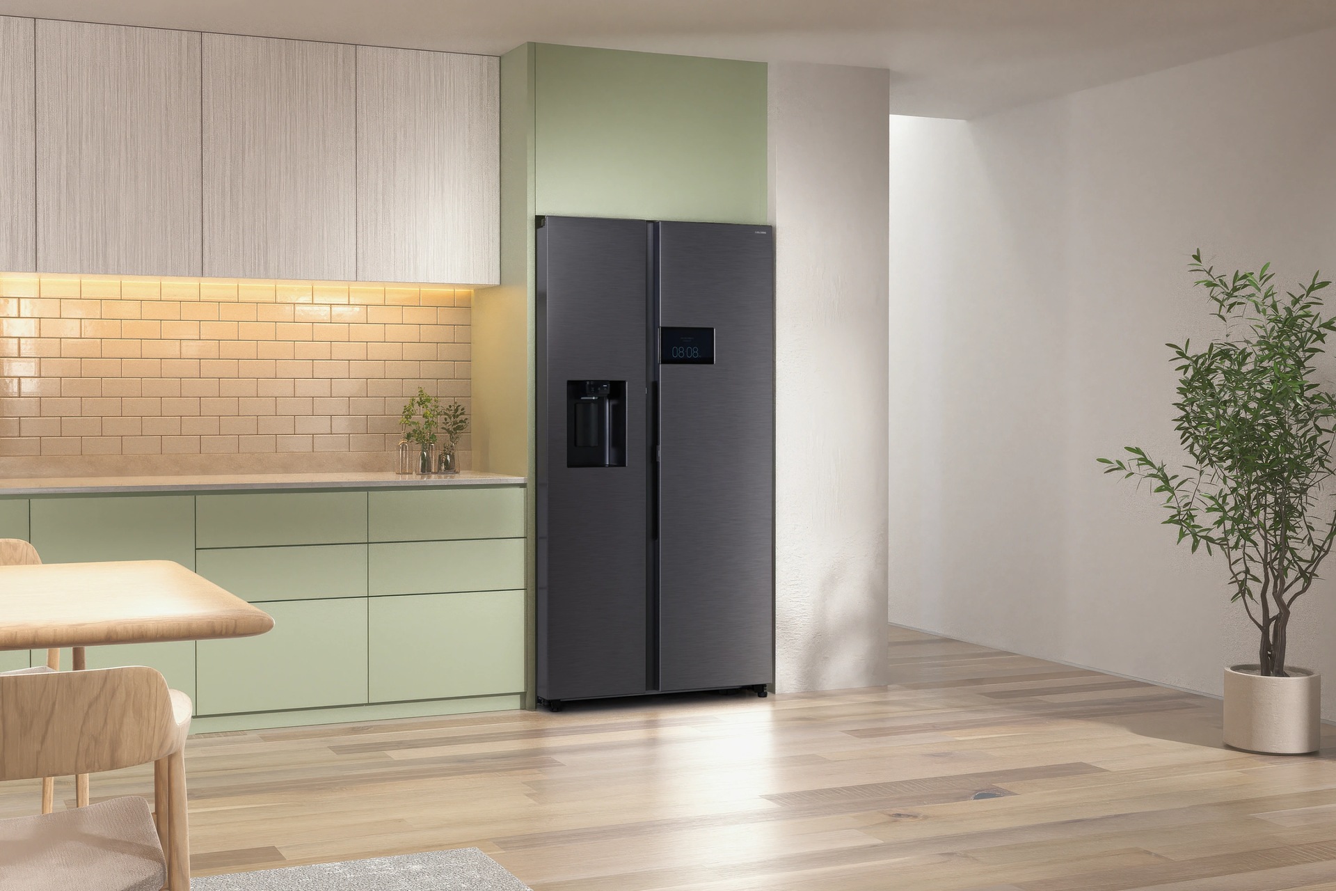 * You can select the door opening level using the SmartThings App (SmartThings is available on Android and iOS devices. A Wi-Fi connection and a Samsung account are required). The ‘Wide-open’ option automatically opens the door by an angle of 80 degrees or more, but the door does not close automatically. The ‘Semi-open’ option reduces the force required to open the door, and automatically closes the door after a certain period of time if the door is left open. The actual angle that the doors open may vary due to the installation circumstances and usage conditions, like storing heavy items in the door bins.Responds to you