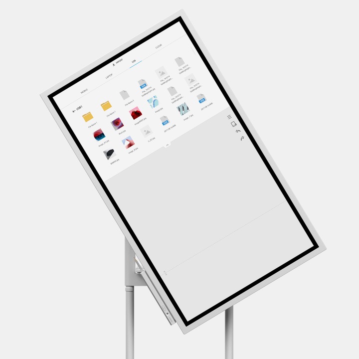 For business with limited collaborative areas, the Samsung Flip elevates any personal office or available room into a fully-functional huddle space. A portable, wheel-based stand empowers users to start a meeting in any location at anytime.