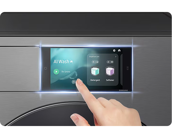 The 7-inch display on the Bespoke AI washing machine acts as an intuitive control centre. The touchscreen provides clear information, and personalises your washing, as it remembers how you like to wash your clothes and suggests cycles. When the cycle is complete, it provides a laundry report to your smartphone on the SmartThings App.