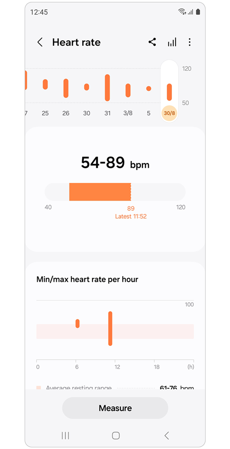 Follow the instructions below to learn how to measure your heart rate using your Galaxy Watch’s Heart rate feature.