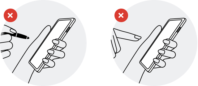 It is not recommended to put pressure on the main screen or press the screen or front camera lens with hard or sharp objects, such as pens or fingernails.