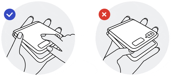 When folding the device, do not place any objects such as credit cards, coins, or keys on the main screen. The screen may be damaged.