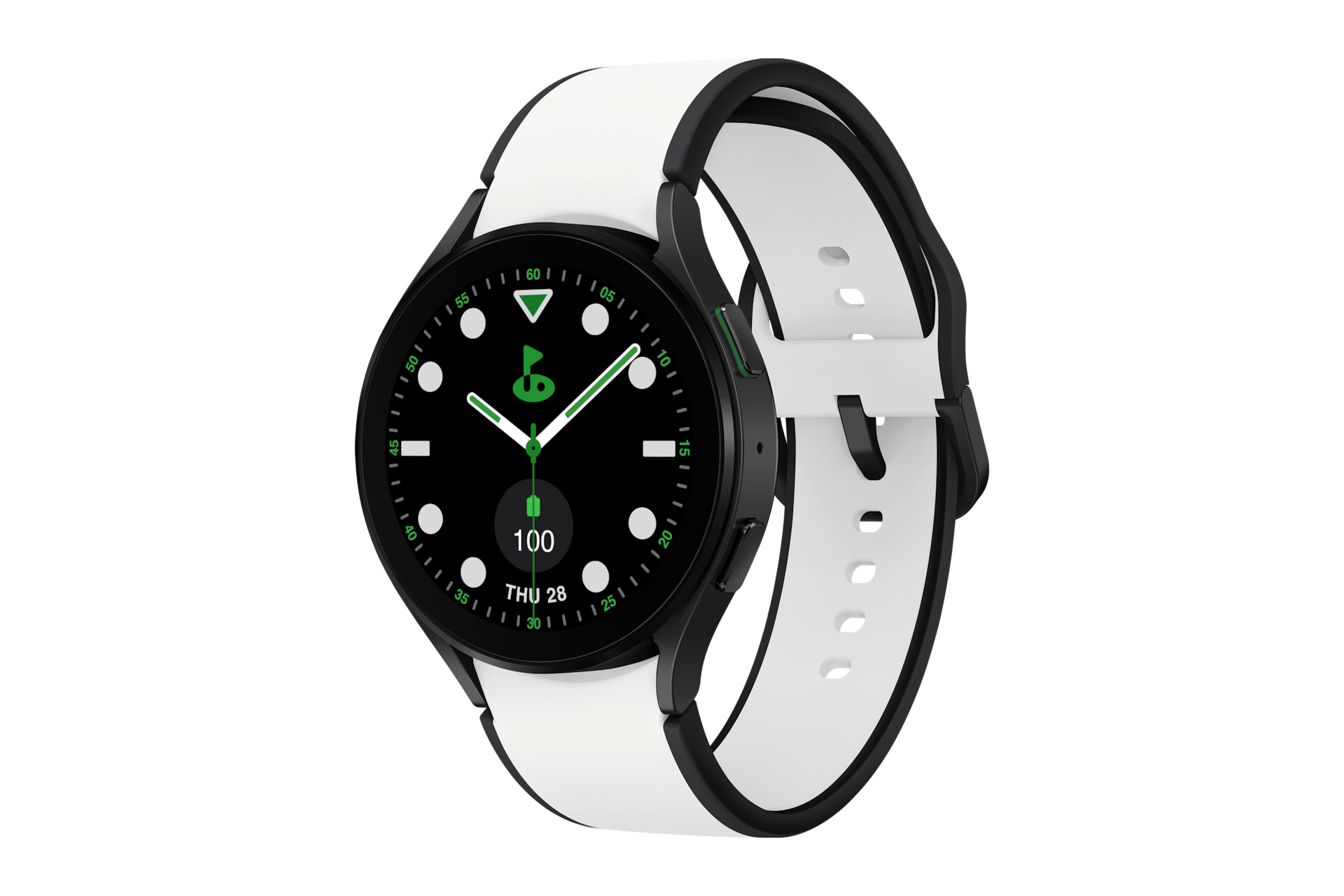 Make your golf buddies green with envy. The golf themed design sports a matching two-tone band, exclusive watch face, and stylish green home button — designed with exclusive colours made for the course.1 With Galaxy Watch5 Golf Edition, it's always tee time.