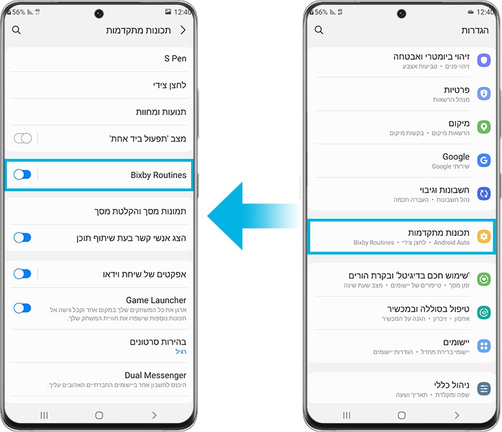ניתן לגשת אל Bixby Routines בשתי דרכים שונות: