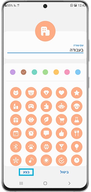 4. הקישו על הבא. תוכלו להגדיר שם עבור השגרה המותאמת אישית שלכם, וכן סמל וצבע שיוצגו בהשגרות שלי.