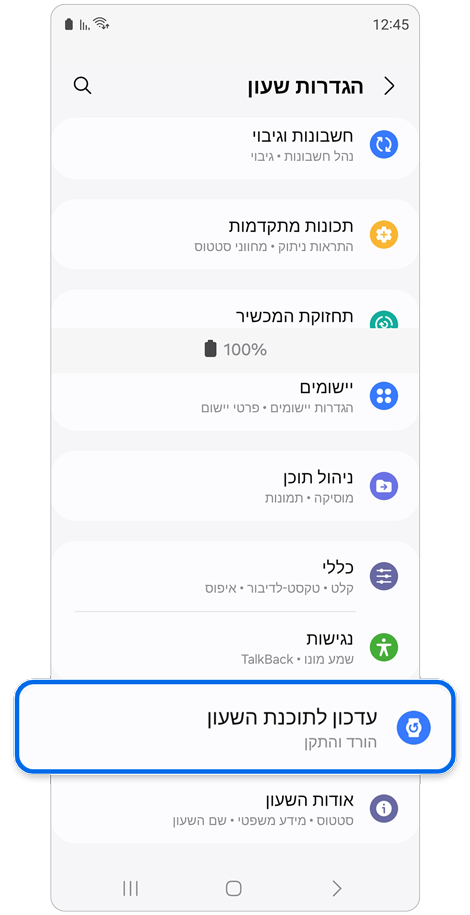 עדכן את תוכנת השעון בטלפון הגלקסי שלך
