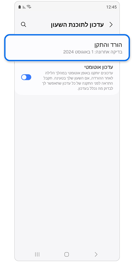 1. עברו אל הגדרות > חפש עדכוני מערכת.
