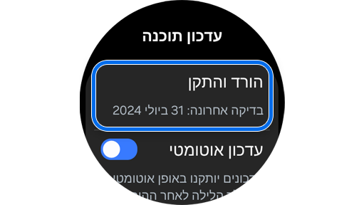 איך לעדכן את התוכנה והיישומים בשעון Galaxy שלכם