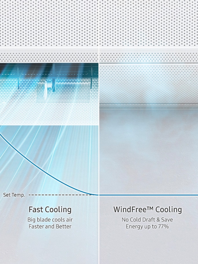consumption of Fast Cooling mode vs. WindFree™ Cooling mode. Results may vary depending on the actual usage conditions.