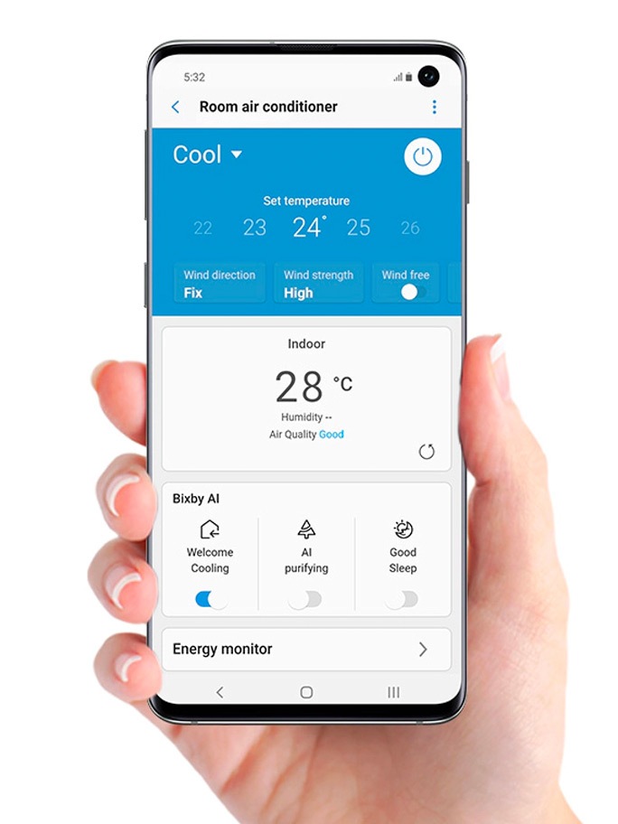 WindFreeTM delivers long-lasting performance and outstanding durability with Triple Protector Plus technology in any hot heating summer*. Added to it, with the Digital Inverter technology, it cools faster than any conventional AC. WindFreeTM also works with the SmartThings App#, so you can switch the air conditioner on and off, schedule operations, switch settings, and even monitor power consumption remotely from your smartphone.