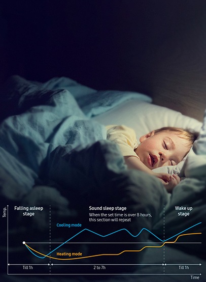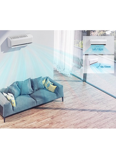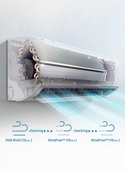 Samsung WindFreeTM cooling produces pleasant cooling without a chilling sensation and eliminates the cold drafts*. It flawlessly maintains the ideal temperature while protecting you from illness and keeping the indoor air healthy and fresh, so you can enjoy peace of mind with a safe and healthy atmosphere around.