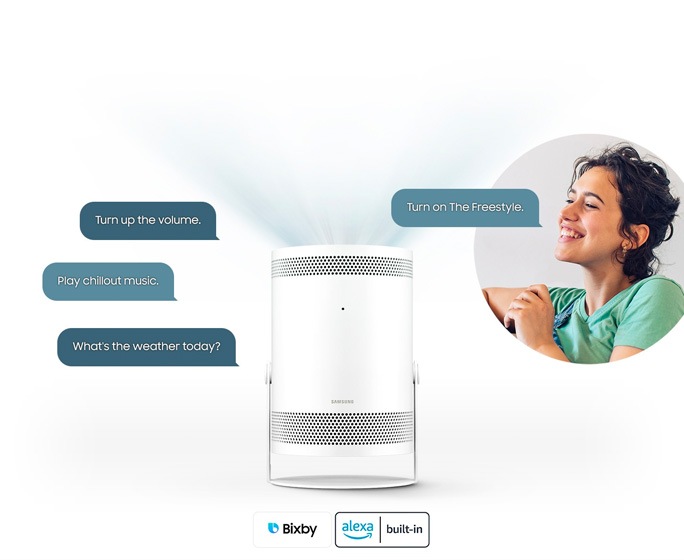 The Freestyle also provides multiple voice assistants*, such as built-in Samsung Bixby and Amazon Alexa**, so one can control The Freestyle with just their voice. The voice assistant of The Freestyle will be able to hear people on the other side of a room with its far-field microphones.