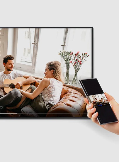 The Frame is a hub of great features and includes numerous smart features that make life easier. With Smart Hub*, you can access unlimited content. Instead of spending time searching, you can simply tap to access your favourite content. Even while on the go, you can simultaneously access your TV and your mobile device on the same screen**.