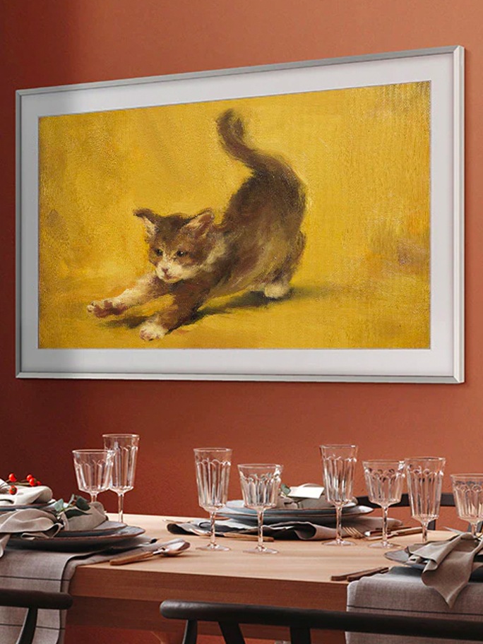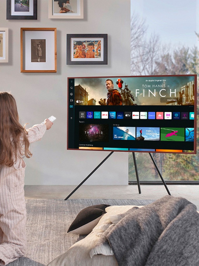 The Frame TV adds an artistic touch to your home interior. It's TV when it's on, and art when it's off. It has over 1600 artworks* and curates a personal gallery to set the mood of the living space. So you can choose the artwork that makes you happy and suits your mood.