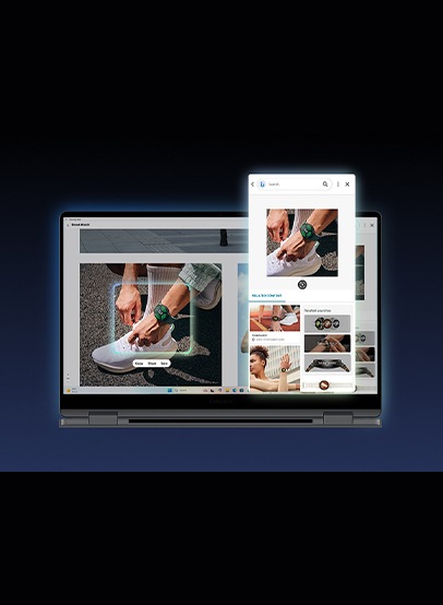 Searching for information has never been easier. No need to type—just trace an image, text or QR code to get search results 6. Need a custom image for a presentation? Cocreator in Paint lets you sketch out an idea, and AI transforms it into a polished artwork. You can edit, regenerate, and refine the image using simple prompts, making creative tasks easier than ever7. With just a single press, the dedicated Copilot key on the Galaxy Book5 Pro gives you instant access to AI-powered assistance. Whether you need help organizing your schedule, drafting emails, or generating ideas, Copilot is ready to assist you whenever you need it8.