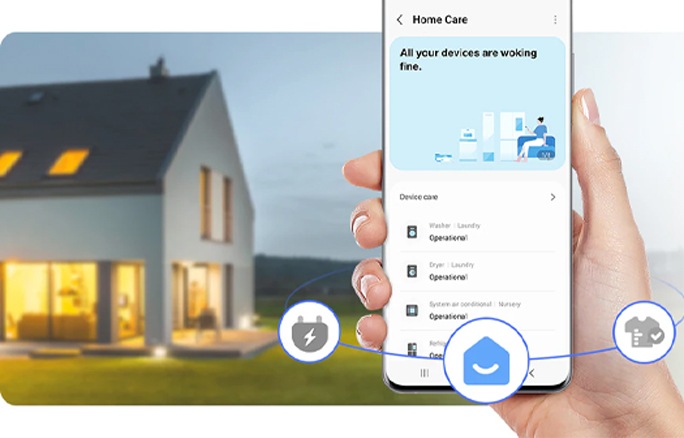Imagine starting your laundry from the comfort of your couch or even while stuck in traffic. With SmartThings Wi-Fi Connectivity, this is now a reality. The washing machine seamlessly integrates with your smart devices, allowing you to control and monitor the progress remotely. No more rushing home to switch loads—convenience redefined! SmartThings App1 optimises performance by analysing your washing patterns2. The laundry recipe recommends the best wash cycles3. The laundry planner optimises your daily wash schedule4. And HomeCare Wizard enables remote troubleshooting of problems.