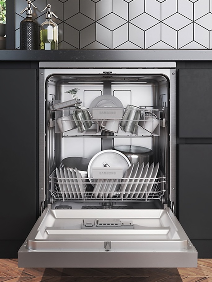 Samsung dishwashers use less energy but clean dirty dishes effectively. They consume less power* without impacting their washing performance or functionality.